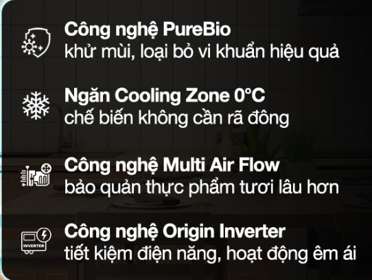 Ngăn lạnh có dung tích 119 lít, gồm có 1 ngăn Cooling Zone 0°C, chia làm 2 ngăn và 1 hộc đựng rau củ quả.
