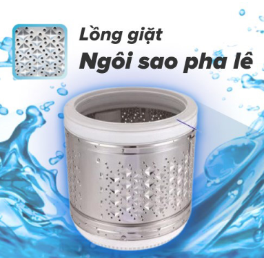 Mâm giặt 864 lỗ tạo tia nước phun ngược, Công nghệ suy luận ảo Fuzzy Logic, Chuyển động giặt đảo chiều, Lồng giặt ngôi sao pha lê |