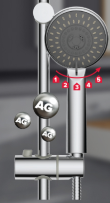 - Bên cạnh đó vòi sen còn được tráng ion Ag+ kháng khuẩn nguồn nước, giúp nâng cao khả năng bảo vệ gia đình.