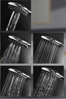 - Vòi sen điều chỉnh 5 chế độ đa dạng về lực phun và các tia nước đáp ứng đa dạng nhu cầu tắm rửa cho từng thành viên trong gia đình.
